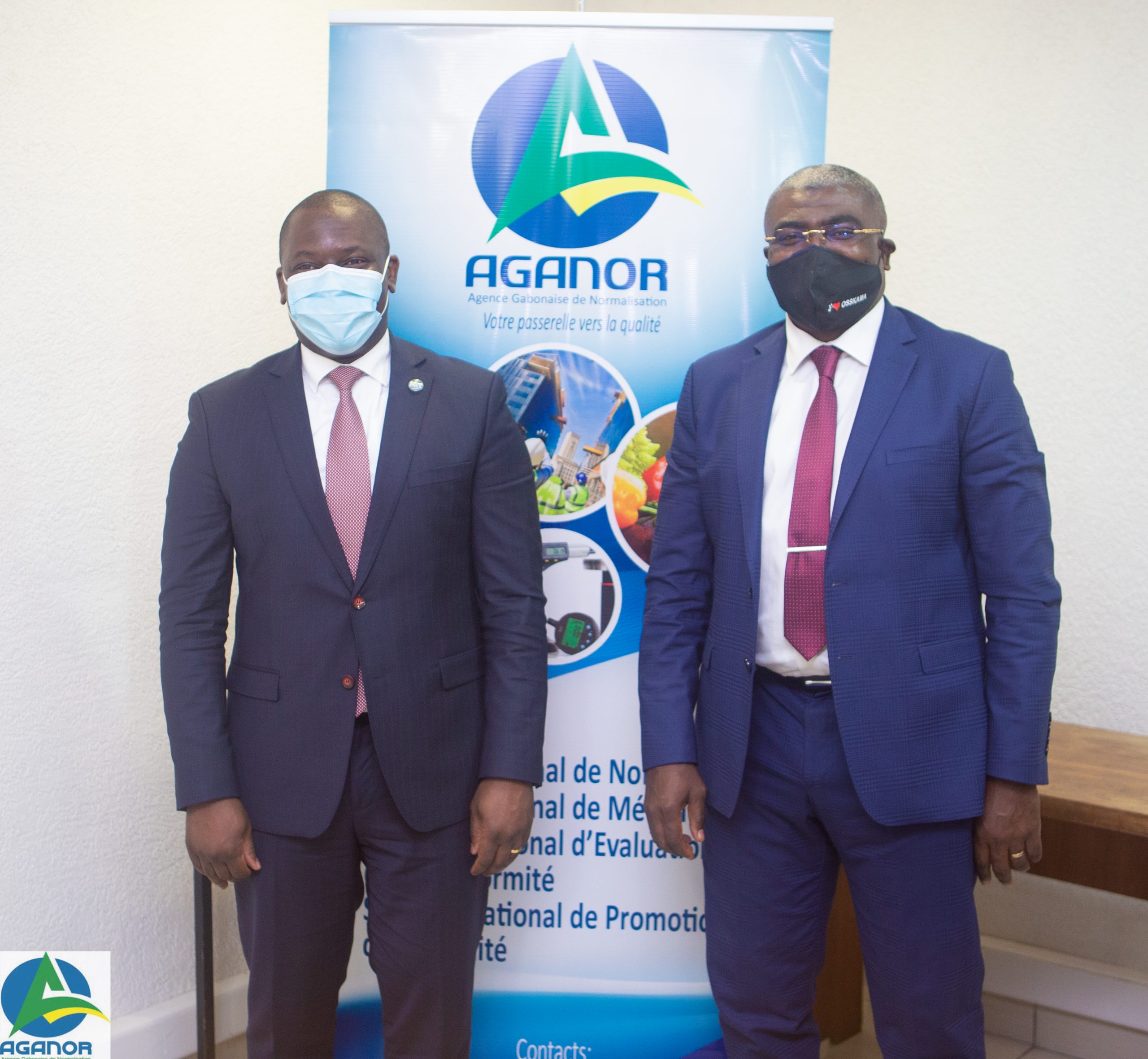 Abdu Razzaq Guy KAMBOGO, Directeur Général de l’AGANOR et Monsieur Luther Steeven ABOUNA YANGUI, Directeur Général de la Concurrence et de la Consommation, se sont entretenus dans les locaux de l’AGANOR. Le but de cette rencontre était d’évoquer les possibilités de renforcement de la collaboration entre les deux entités dans les domaines de : la Métrologie, la Normalisation, la Promotion de la Qualité et l’Évaluation de la Conformité.