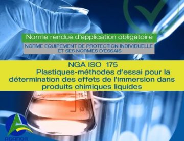 NGA ISO 175 : Plastiques-méthodes d’essai pour la détermination des effets de l’immersion dans des produits chimiques liquides. La NGA ISO 175 spécifie une méthode d’exposition d’éprouvettes en plastique exemptes de toute contrainte extérieure à des produits chimiques liquides, ainsi que des méthodes de détermination des variations des caractéristiques résultant d’une telle exposition. Elle ne…