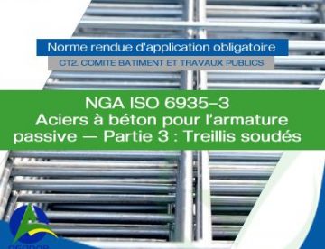 La présente partie de la NGA ISO 6935 prescrit les caractéristiques techniques des panneaux ou rouleaux de treillis soudés, fabriqués en usine à partir de fils ou barres en acier de 4mm à 16mm de diamètre et destinés à l’armature des structures en béton et à l’armature passive des structures en béton précontraint. Les normes…