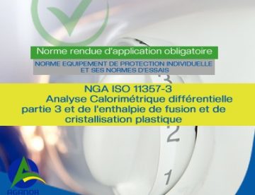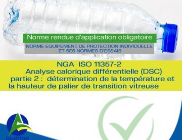 La NGA ISO 11357-3 spécifie une méthode permettant de déterminer les températures et les enthalpies de fusion et de cristallisation des plastiques cristallins ou partiellement cristallins. Les normes visent à répondre aux besoins du marché et sont par principe d’utilisation volontaire. Toutefois, une norme peut devenir d’application obligatoire : • Pour répondre aux besoins du…