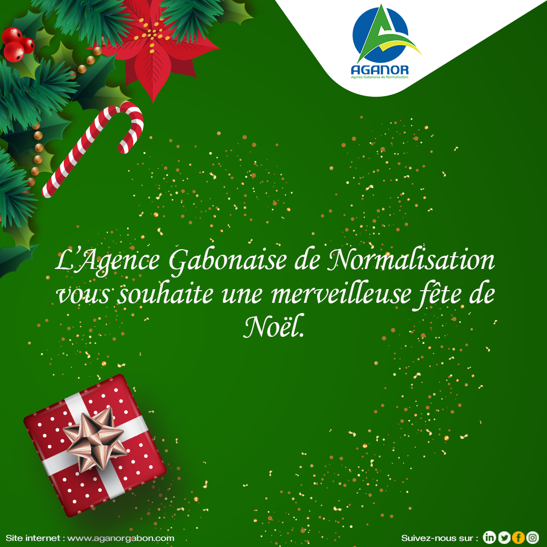 C’est le cœur rempli de lumière et de chaleur que la Direction Générale de l’Agence Gabonaise de Normalisation – Aganor vous souhaite, au nom du Président du Conseil d’Administration et l’ensemble des collaborateurs, le plus merveilleux des Noëls.