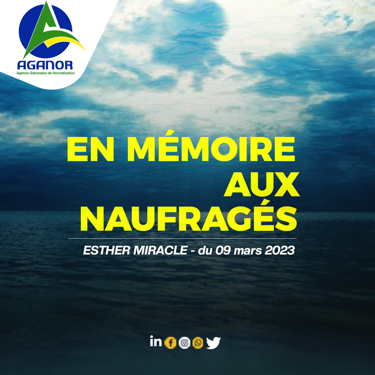 La Présidente du Conseil d’Administration, la Direction Générale de l’Agence Gabonaise de Normalisation – Aganor et les membres du personnel, partagent la peine des familles éprouvées par le naufrage de l’Esther Miracle.