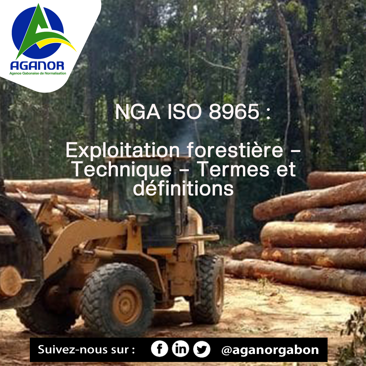 L’Agence Gabonaise de Normalisation – Aganor vous propose un accompagnement sur deux normes indispensables que sont la NGA ISO 8903 et la NGA ISO 8965. La première traite du sciage de bois feuille et la deuxième sur l’exploitation forestière.
